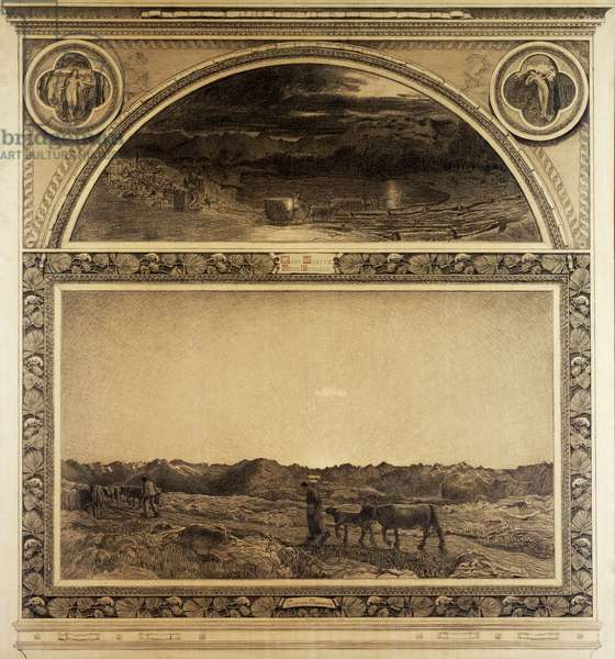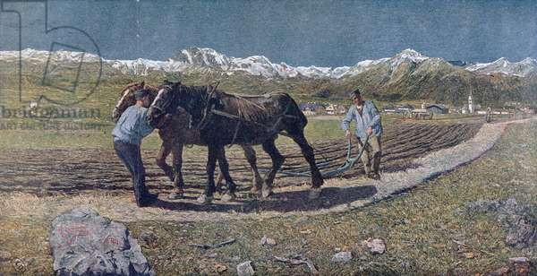 Peasants ploughing a field in the north ...Segantini, Giovanni