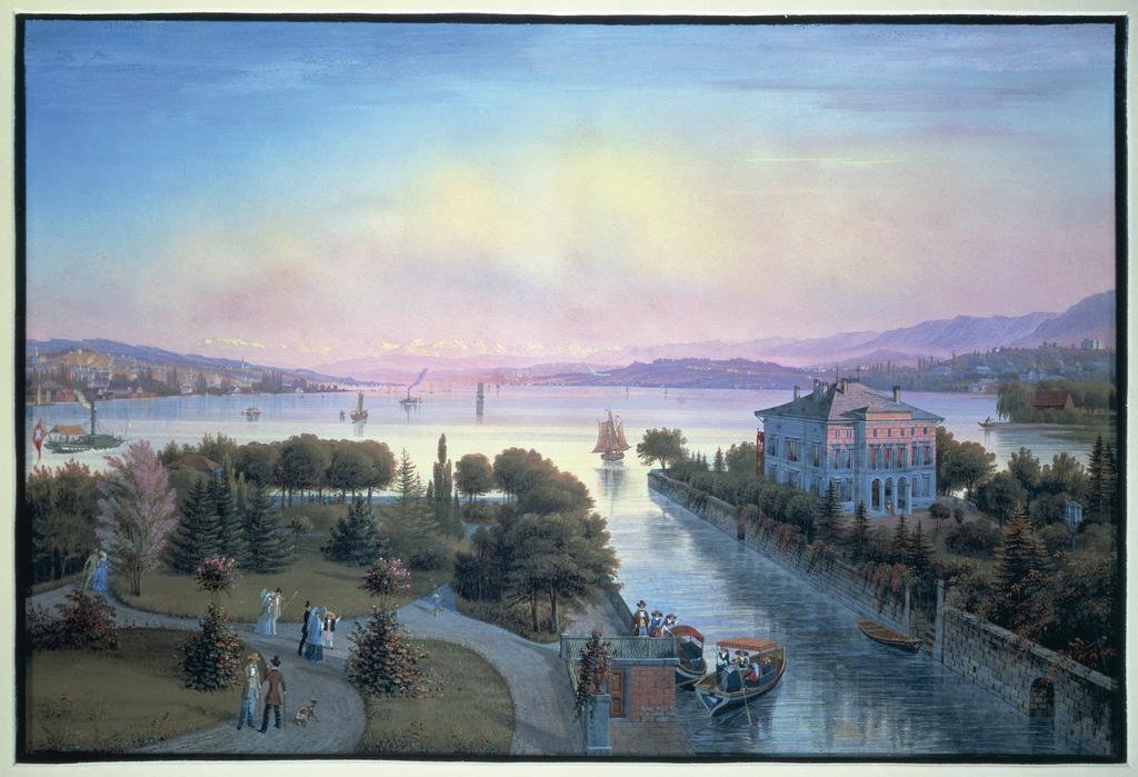 Switzerland, View of Lake Zurich and Rosau Villa, by Emanuel Labhardt, watercolor