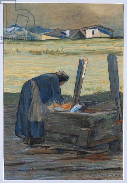 Brown Cow drinking from a TroughSegantini, Giovanni
