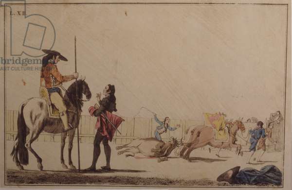 Picador riding and dragging the bullCarnicero, Antonio