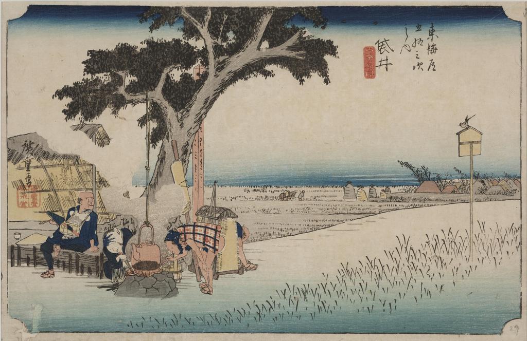 An Outdoor Tea Stall, 1834 (colour woodblock print)
