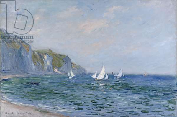 Cliffs and Sailboats at PourvilleMonet, Claude